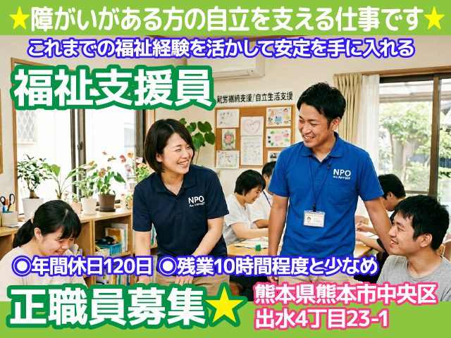 熊本県熊本市中央区【障がい者福祉支援員/正職員】障がいがある方の自立を支える仕事の募集内容