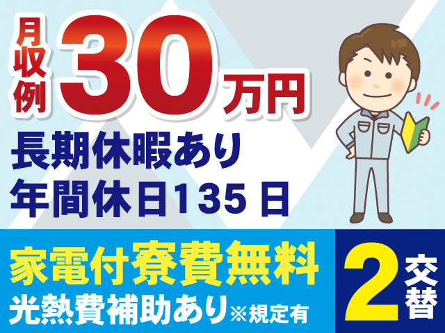 未経験OK/月収例30万円/入寮OK!寮費ずっと無料&水道光熱費補助あり/社員食堂あり/給与前渡し可