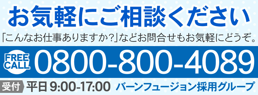 そんな時はバーンフュージョンの担当者へお気軽にご相談ください。