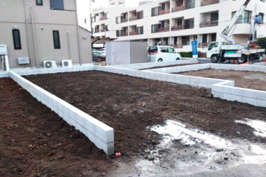 更地の土地にブロックを積んで