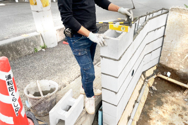 正社員/ブロックを積む現場作業