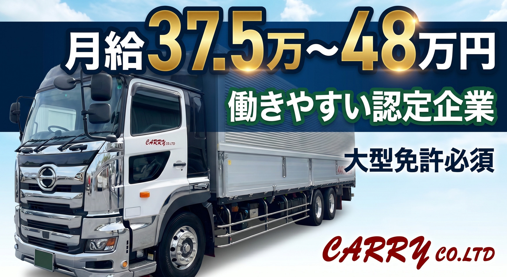 【正社員】大型配送ドライバー/月給37.5万円以上可/泊まりなしの日帰り/中距離/働きやすい認定企業