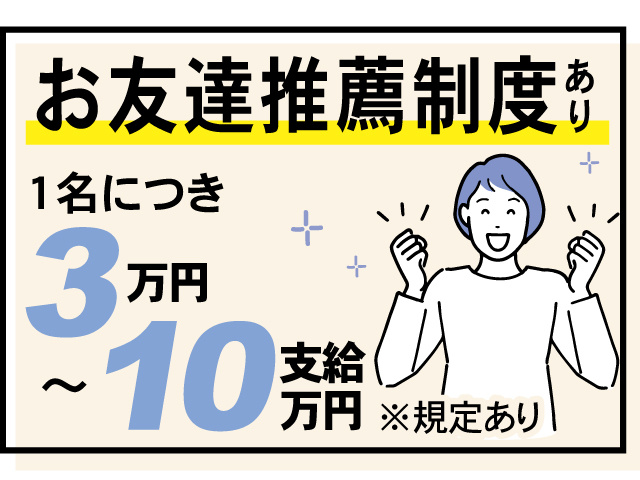 ◎お友達推薦制度あり ※規定あり/1名につき3万円~10万円臨時給与として支給