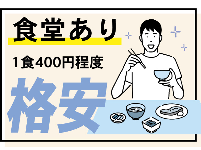 ◎食堂あり…250円(おかず1品)~400円程度と格安で利用可 ※(1)昼勤務のみ利用可