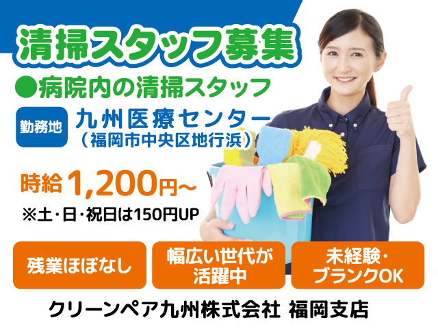 福岡県福岡市中央区【病院内の日常清掃スタッフ】病室・トイレ・浴槽清掃やゴミ回収などの募集内容