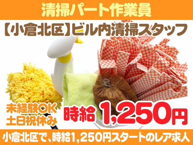 福岡県北九州市小倉北区【清掃パート作業員】小倉北区にあるビル内清掃のお仕事の募集内容