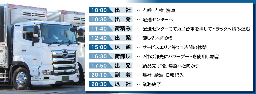 ルートや運ぶ商品にもより多少の変動はございます。中型ドライバーでの参考例になります。