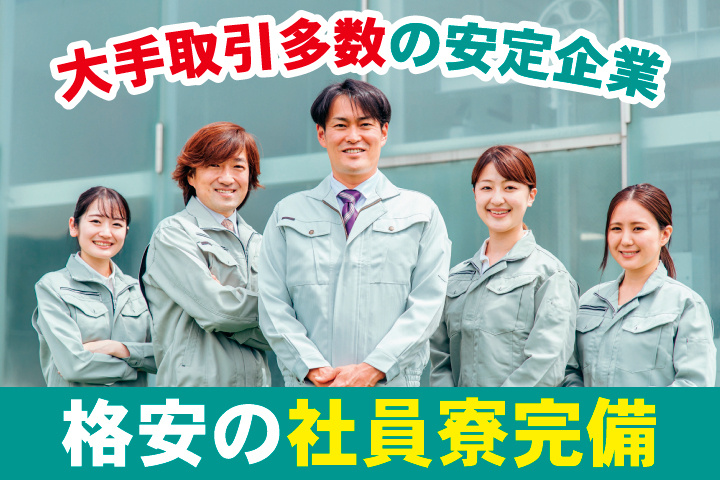 <未経験から正社員へ>ボタン操作メインで月収26万円可!年休120日の安定工場ワーク!社員寮完備!