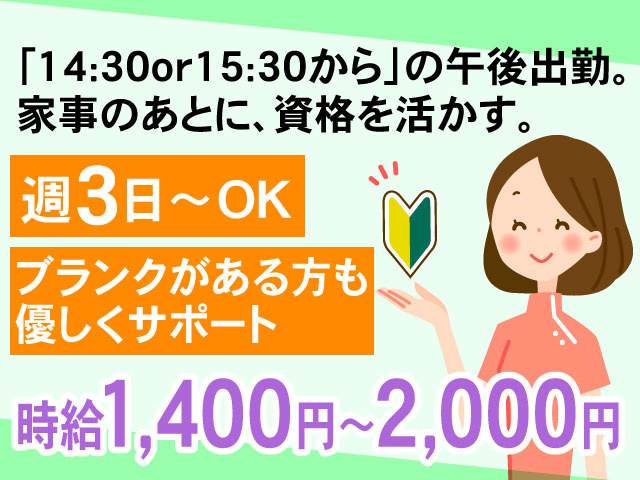 または15:30〜19:00のどちらも午後の短時間勤務!