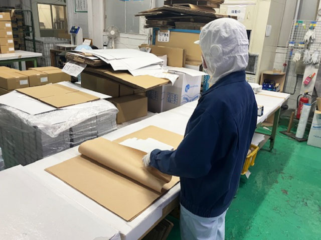 貼り機械の操作操作業務並びに仕上げ、出荷に向けた