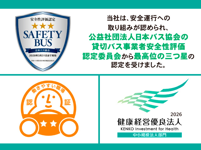 2027年新卒/整備士資格の養成制度あり/「プロが選ぶ優良観光バス30選」連続1回入選