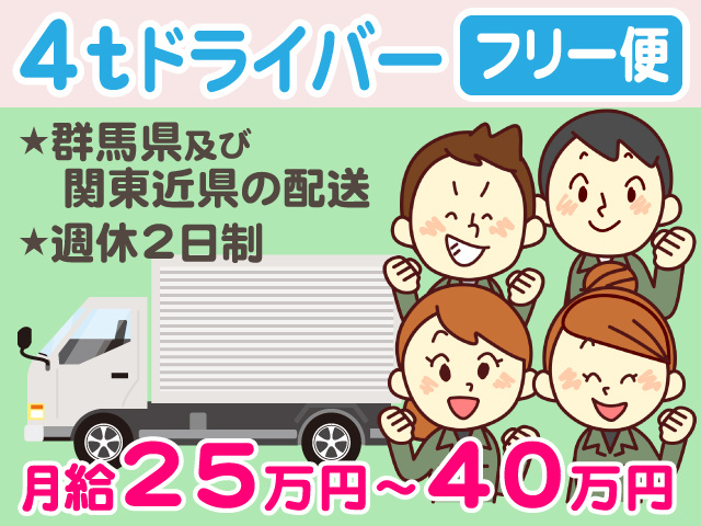 【4tドライバー】土日祝日休みも可/週休2日制/フリー便