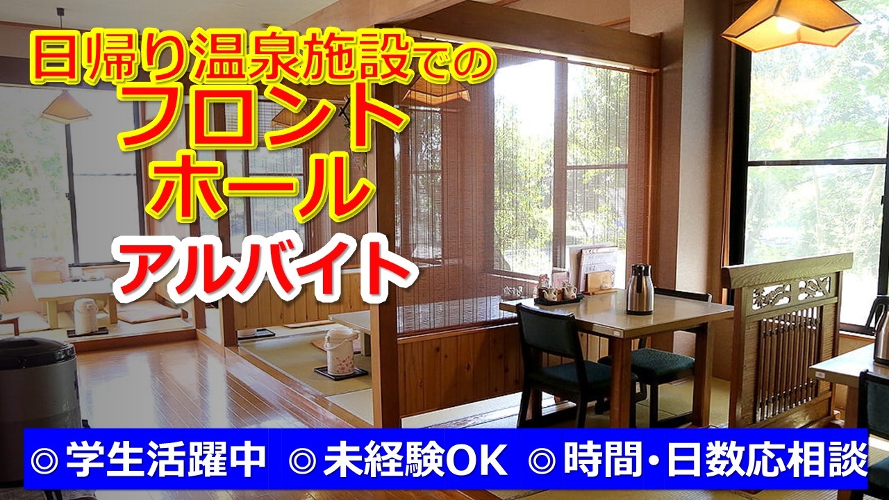 山梨県山梨市【日帰り温泉でのフロント・ホール】日帰り温泉での受付、電話対応、接客等の募集内容