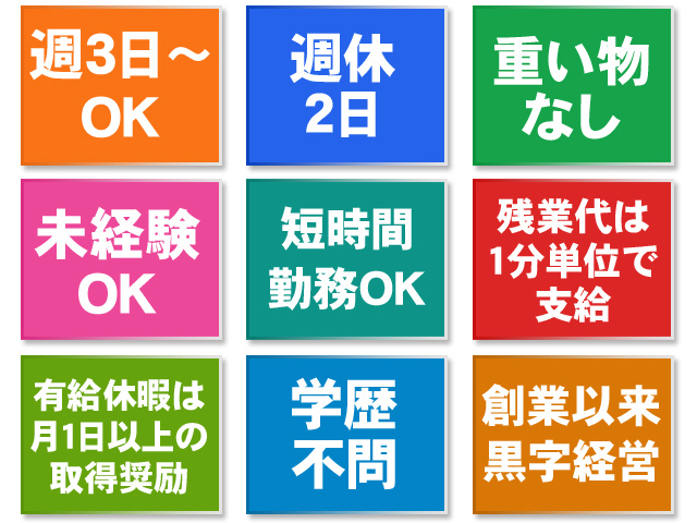 毎週、日曜日と月曜日は必ず2連休!+シフトによる休みあり。