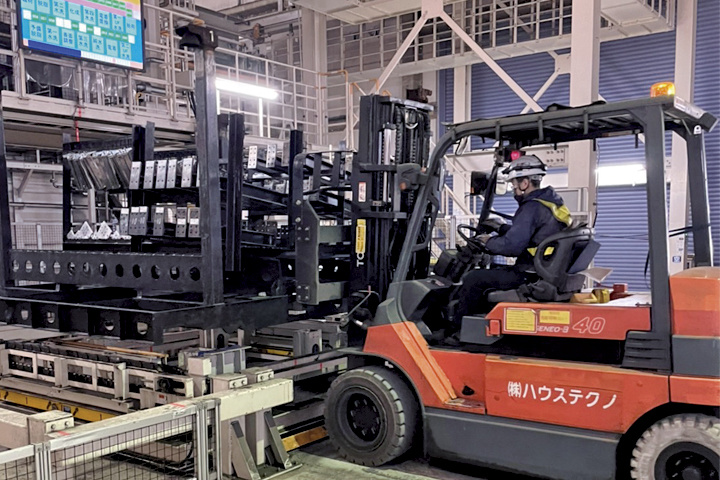 住宅用鉄骨の塗装工場でのカウンタ―フォークリフト作業です。