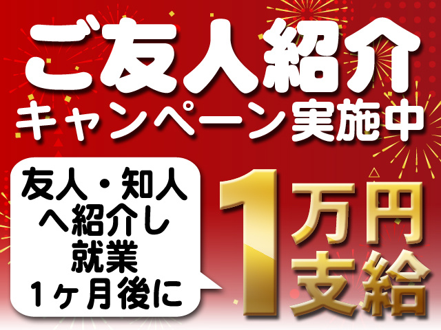 ご友人紹介で1万円支給(給与と共に支給)