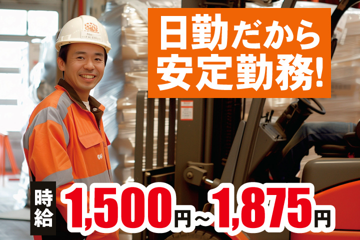 - 倉庫内フォークリフト作業!日勤・土日休みで働きやすさに自信あります。