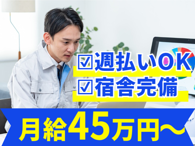 月給450,000円~ 無料個室宿舎あり 週払いあり