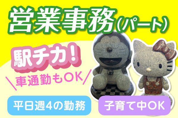 未経験OK/営業事務/固定曜日勤務/駅近で通勤便利/車通勤も可/無料駐車場完備/平日4日のみの事務