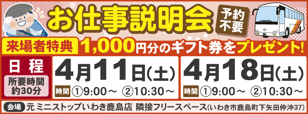 【バスドライバー】主にいわき市内の観光バス・送迎バスの運転