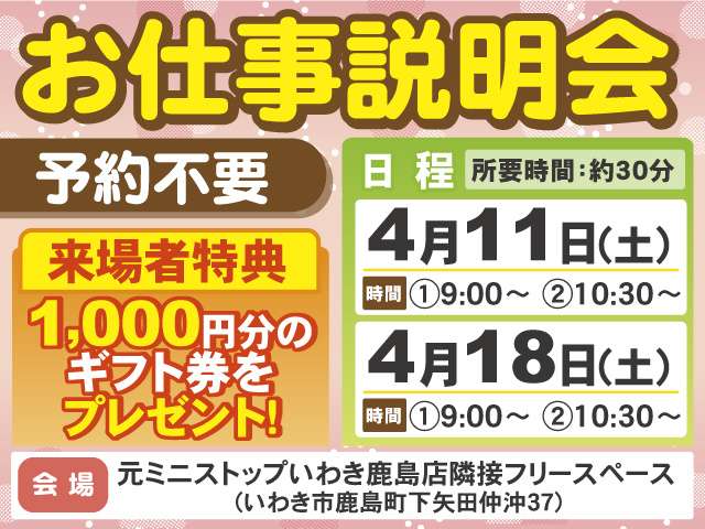《予約不要のお仕事説明会開催中》