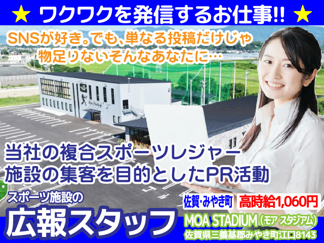 佐賀県三養基郡みやき町【広報スタッフ/アルバイト】当社の複合スポーツレジャー施設の集客を目的としたPR活動の募集内容