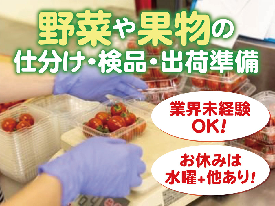 野菜や果物の仕分け・検品・出荷準備作業/未経験OK/シンプルな軽作業/時給1313円