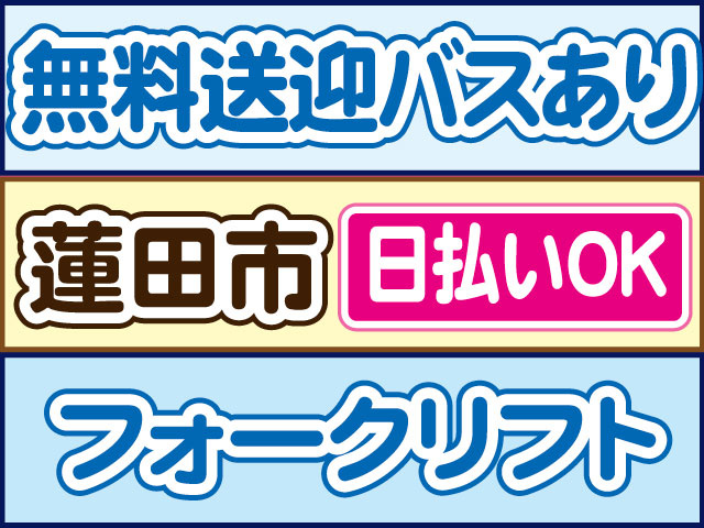 【フォークリフトスタッフ】免許必須/入出庫/土日祝休み/高時給/日払いOK