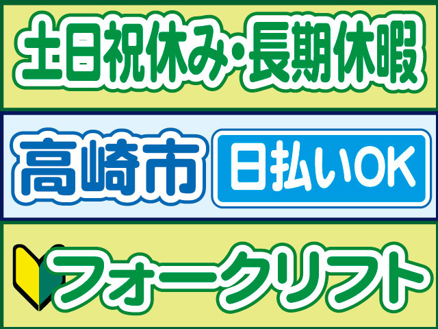 【フォークリフト】日払いOK/カウンターフォーク/資格が活かせる/土日祝休み