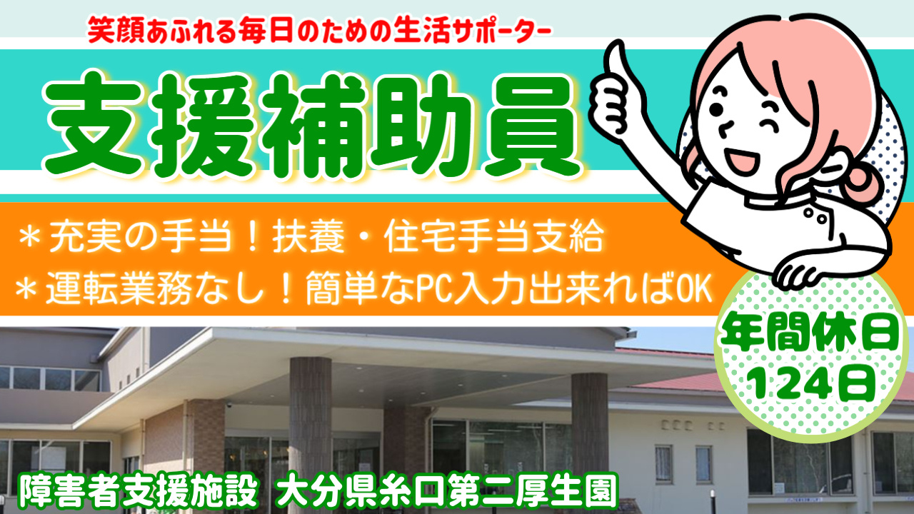 年間休日124日&扶養・住居手当が充実!運転業務なし。未経験から安定の待遇で働ける「糸口第二厚生園」
