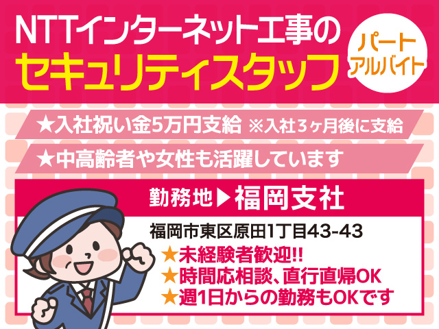 福岡県福岡市東区【パート警備スタッフ】NTTインターネット工事のセキュリティスタッフの募集内容