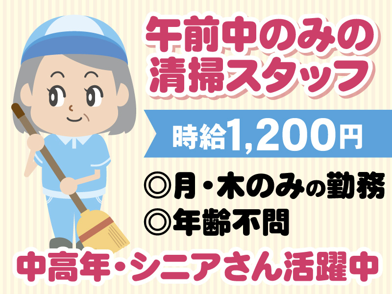 富山県射水市【午前中だけの施設内清掃スタッフ】午前中のみ/週2日の勤務/中高年・シニアさん活躍の募集内容