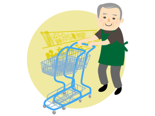 【スーパーでのショッピングカート回収・清掃】店内清掃・トイレ清掃あり/週2日から勤務可/短時間/年齢不問