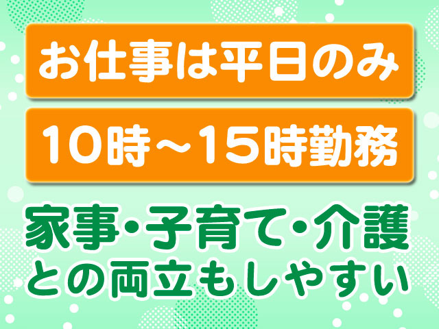 〇10時~15時の短時間勤務で体への負担も少なめ