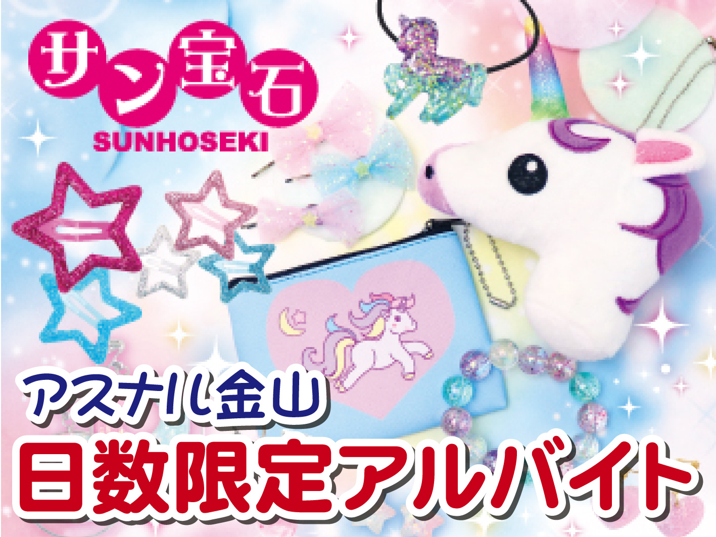 アスナル金山/子ども向けアクセサリーやグッズの販売/6日間の短期/未経験OK/サン宝石