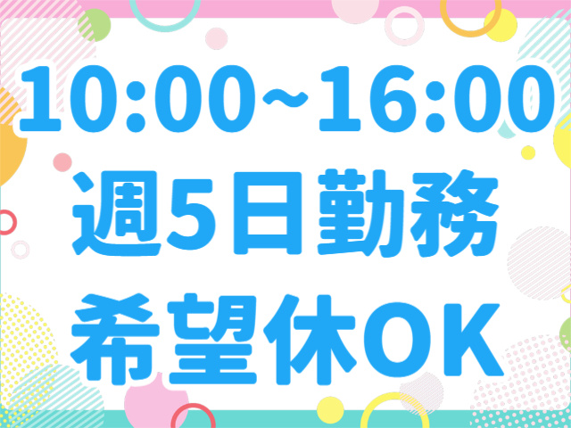未経験OK/日中のみ/週5日/10時~16時/賄いあり/希望休ほぼ通ります