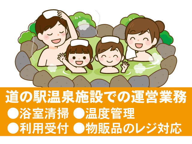 - 道の駅内の温泉施設での清掃・受付等の運営スタッフ
