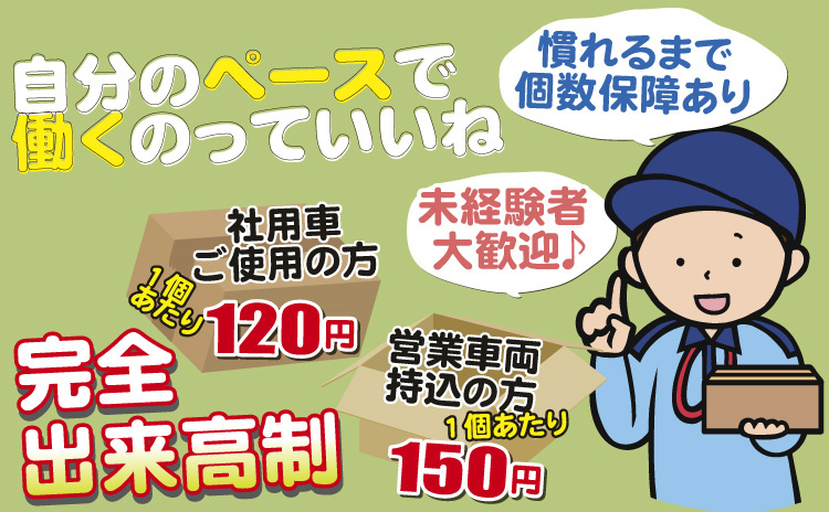 【完全出来高制の配達ドライバー】未経験者可/長期勤務可/寮完備/年齢・男女不問/30代~60代活躍中