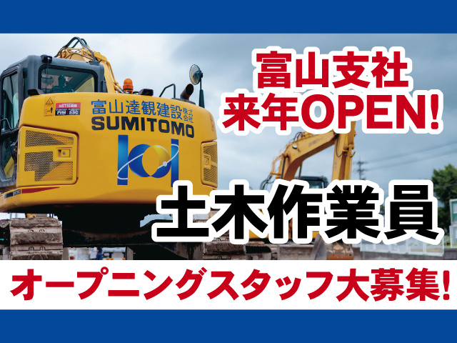 富山の明日をつくる富山達観建設/オープニング募集/未経験の方もOK/経験のある中高年世代の方大歓迎