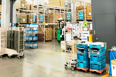 大手コンビニの物流センターでリーチフォークを使ってのお仕事。
