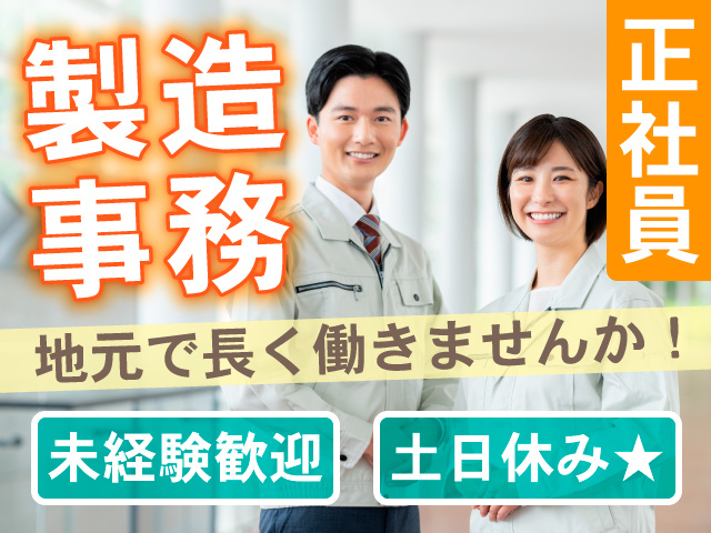 未経験OKの製造事務/土日休み&正社員で長く働ける一般事務職/転勤なし!地元で長く働きたい方にお勧め