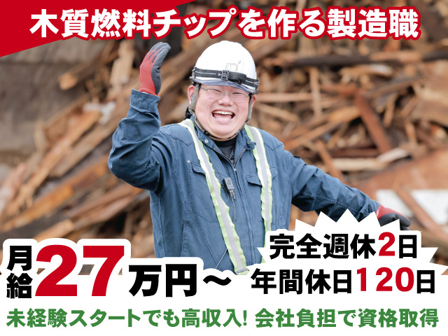 岐阜県土岐市【木質燃料チップを作る製造職】破砕機への木材の投入、機械の操作の募集内容