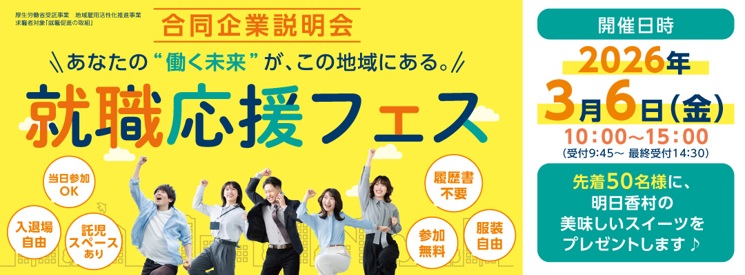 表示以外の職種の募集がある場合もございますので、詳しくは当日ブースにてお尋ねください