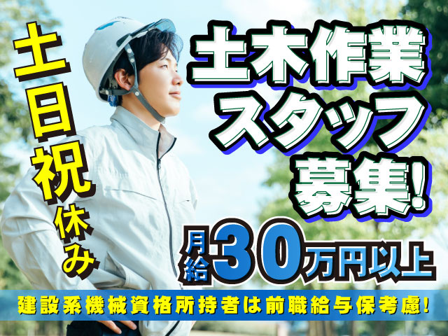 土木作業スタッフ/月給30万円~/前職給与考慮あり