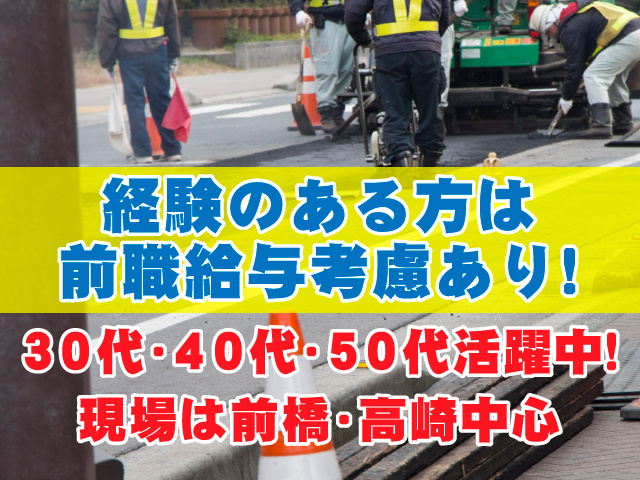 群馬県前橋市【土木工事・道路舗装の現場作業員】土木工事・道路の舗装工事/群馬県を中心とした現場の募集内容