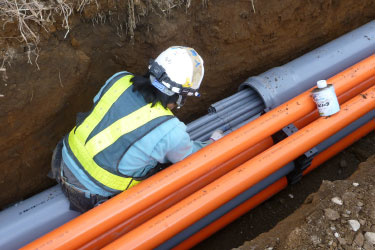 電線共同溝工事とは、日本の街の頭上にくもの巣のように張り巡らされている電線を地下に収容し、街の無電柱化を実現する工事です。